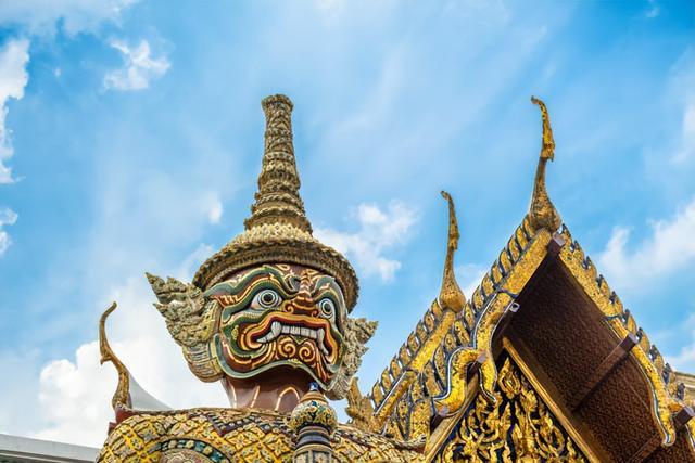关于韦驮,还有一段“夺回佛牙”的典故:据说在释迦牟尼去世后,诸天神商议将佛陀的遗体火化,收取佛舍利建塔供养。帝释天手持七宝瓶前来,称佛陀生前曾答应给他一颗佛牙,于是先取了一颗佛牙准备回去供养,却在途中被罗刹鬼偷走。韦驮一路擒获罗刹鬼,成功夺回了佛牙,这也成了他“护法护舍利”的标志性事迹。