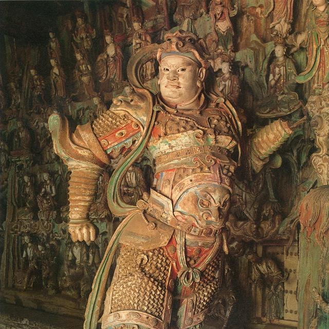韦驮的形象也完全“中国化”:是一位俊美的年轻将军,身着典型的中国古代铠甲。他的塑像有两种姿态:一种是双手合十,将金杵横在臂上;另一种是一只手叉腰,另一只手拄着金杵,成为中国寺庙中辨识度极高的护法形象。