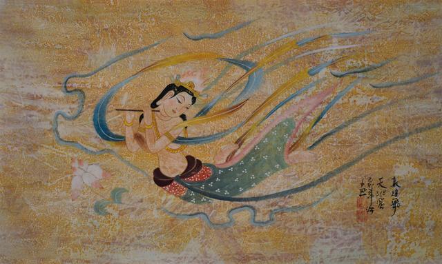 紧那罗:同样是佛前的奏法乐之神,不过多以女神形象出现,也被称为“歌神”。佛教壁画中常见的“飞天”形象,很多便是以紧那罗为原型创作的。还有一种说法称,紧那罗后来嫁给了乾闼婆,二者成了佛前的“乐神伴侣”。