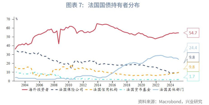 截止2025年一季度海外投资者持有法国国债超过55%。