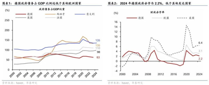 去年德国政府债务占gdp之比仅为63%,赤字率仅为2.2%。