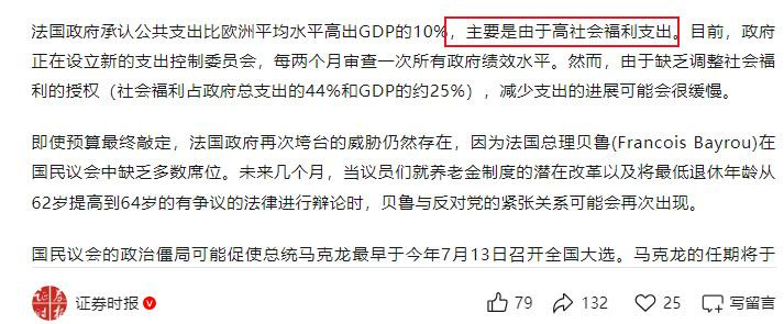 因为公共支出大,法国这些年的公债存量很大,财政压力更大。
